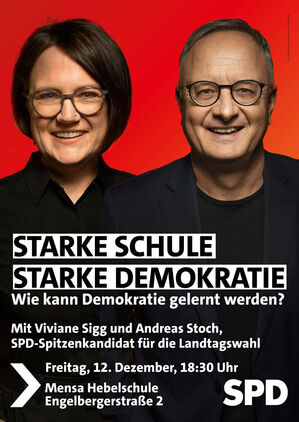 Als Hauptgast dürfen wir Andreas Stoch, SPD-Landes- und Fraktionsvorsitzender, begrüßen. Der ehemalige Kultusminister und Spitzenkandidat für die Landtagswahl wird einen Einblick in die aktuellen bildungspolitischen Debatten geben und aufzeigen, welche politischen Schritte aus seiner Sicht notwendig sind, um die Demokratiebildung an unseren Schulen nachhaltig zu stärken.