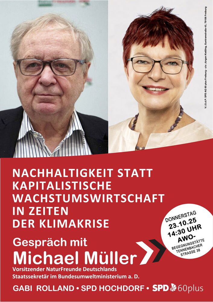 Unter dem Titel „Nachhaltigkeit statt kapitalistische Wachstumswirtschaft in der Klimakrise“ wollen wir, Gabi Rolland, Jürgen Kiessling und ich das Thema insbesondere unter dem Gesichtspunkt einer künftigen Politik der SPD mit Michael Müller diskutieren.